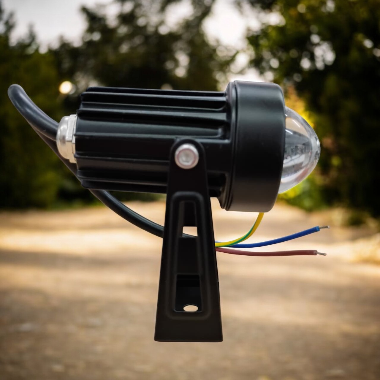 Lampu hias taman RGB dengan bodi plastik dan braket besi kokoh, tahan air IP65, hadirkan cahaya indah malam hari.
