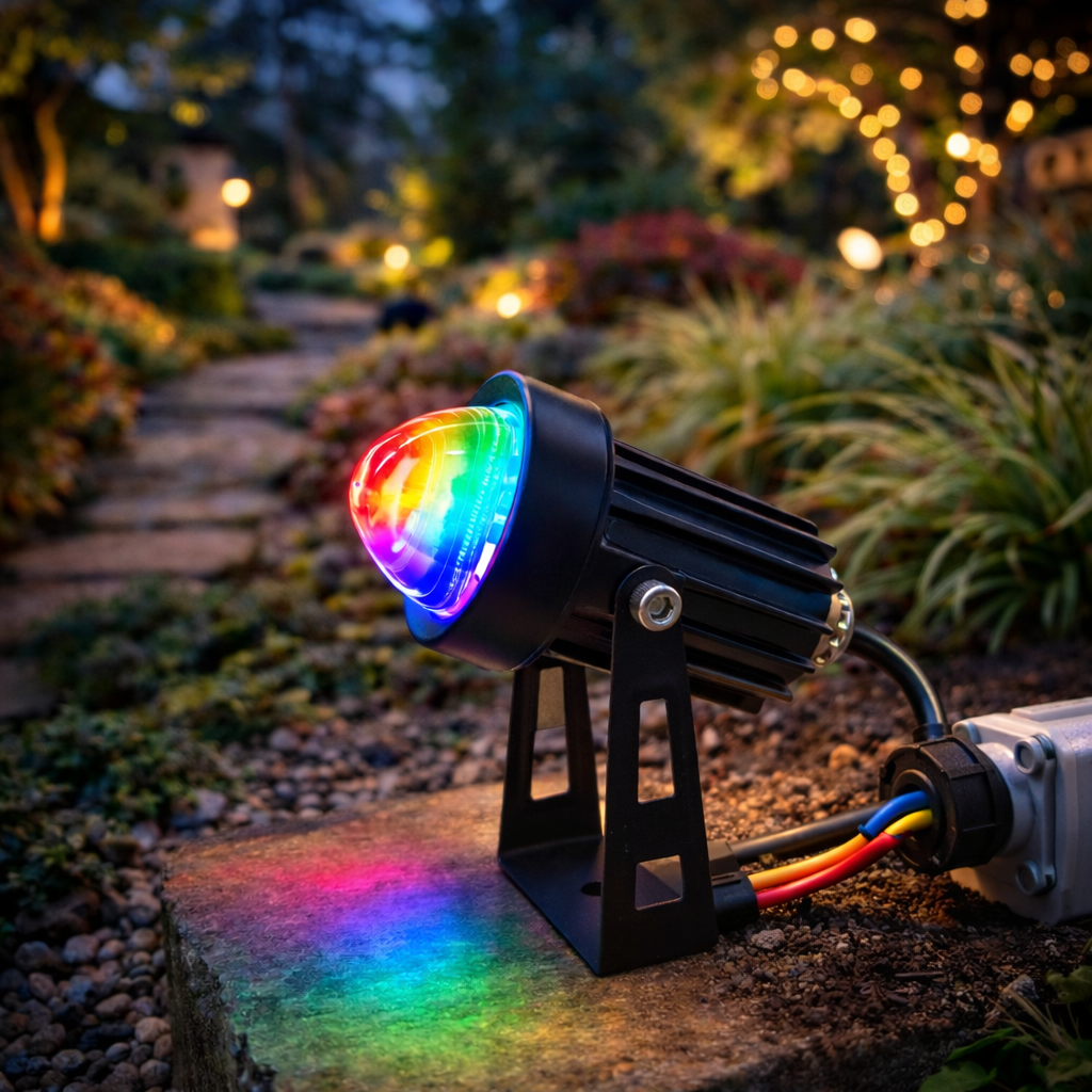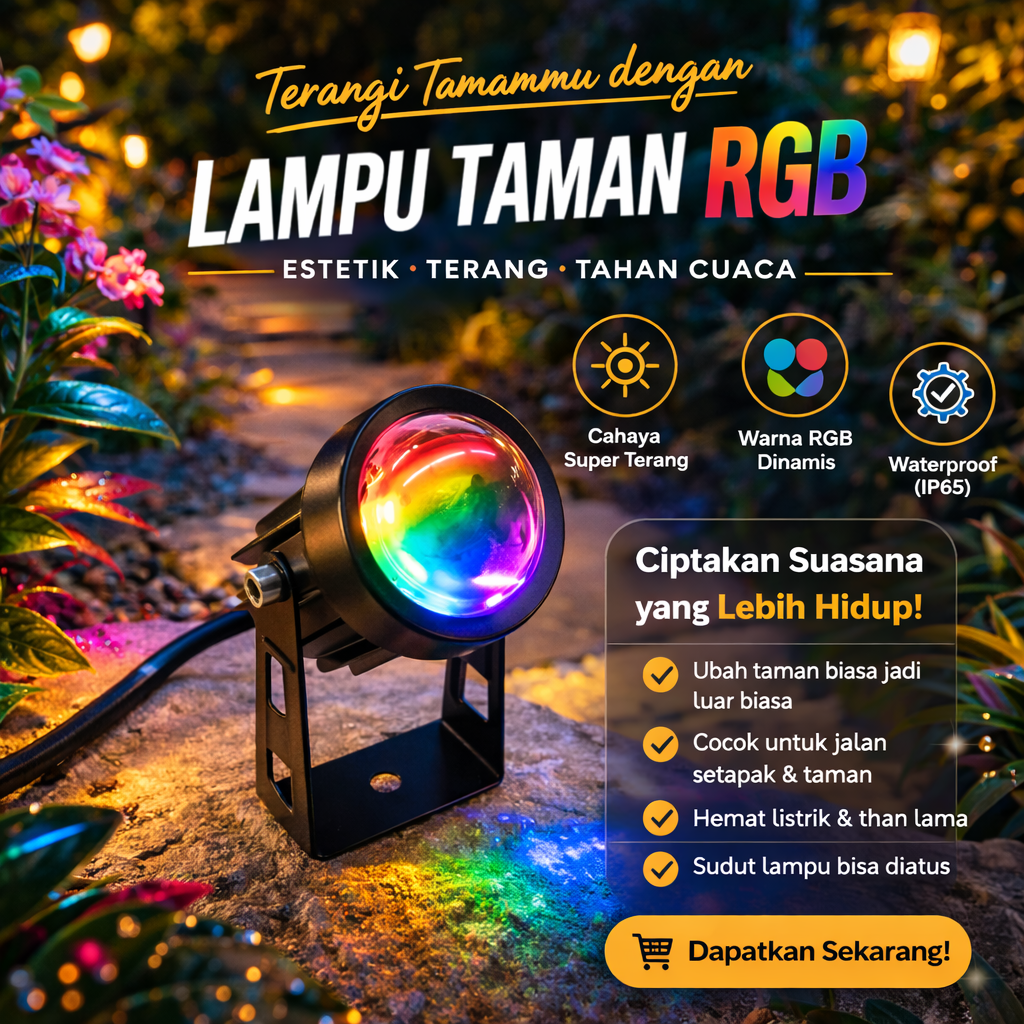 Lampu hias taman RGB ini menghadirkan pencahayaan warna-warni yang mempercantik area outdoor saat malam hari. Dilengkapi bodi plastik dan braket besi yang kokoh serta tahan air IP65 untuk penggunaan luar ruangan. Cocok untuk taman, halaman rumah, maupun dekorasi outdoor lainnya.