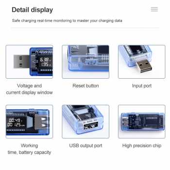 Voltase yang berlebihan dan tidak sesuai dengan nilai voltase yang semestinya merupakan salah satu tanda-tanda kerusakan pada perangkat elektronik Anda. Oleh karena itu, alat detektor ini menawarkan solusi yang cepat dan mudah untuk mengukur tegangan output USB dan arus konstan. Dilengkapi dengan layar LCD, detektor ini berukuran kecil serta ringan, sehingga bisa Anda bawa ke mana saja. Detektor ini cocok untuk Anda yang sering mengetes voltase (V), ampere (A), dan mAh barang-barang berbasis USB.