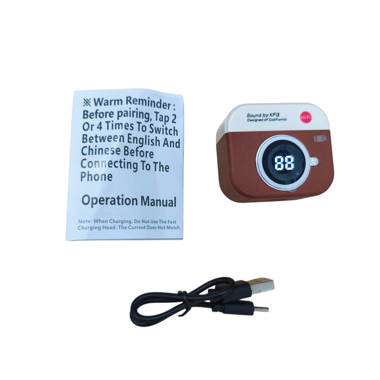 Nikmati pengalaman mendengarkan musik serba praktis dengan earphone Bluetooth dari KFG. Mengusung desain in ear bertangkai, earphone ini berukuran kecil dan nyaman di telinga. Desain charging case yang unik berbentuk kamera retro, yang menambah kesan estektik. Display pada charging case memiliki tampilan keren yang menampilkan informasi kapasitas baterai charging case. Ditambah dengan fitur noise cancellation yang akan membuat suara Anda tetap jernih ketika melakukan telepon.