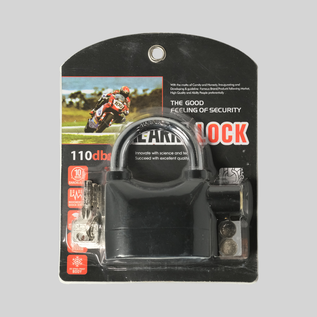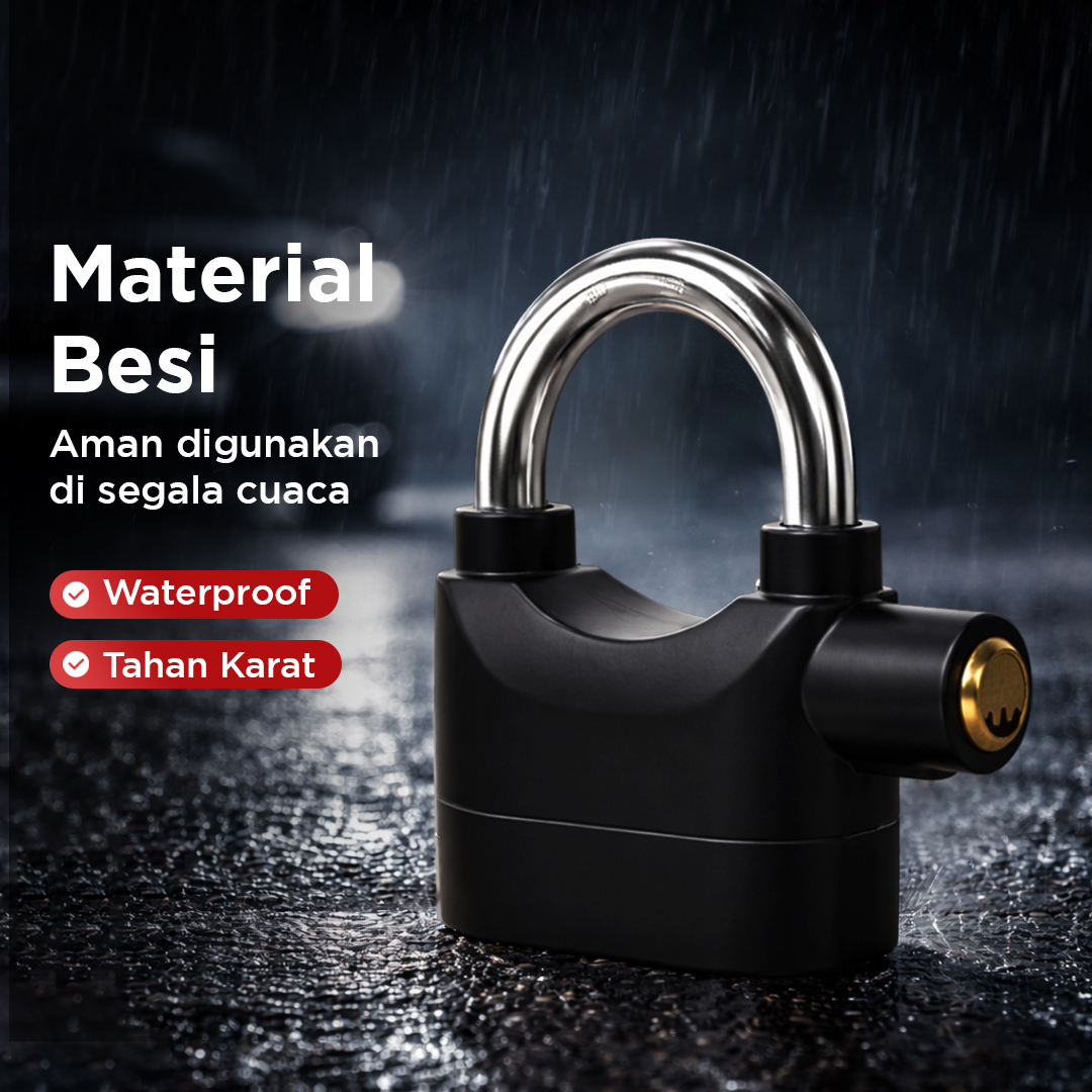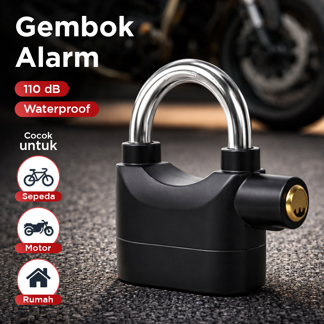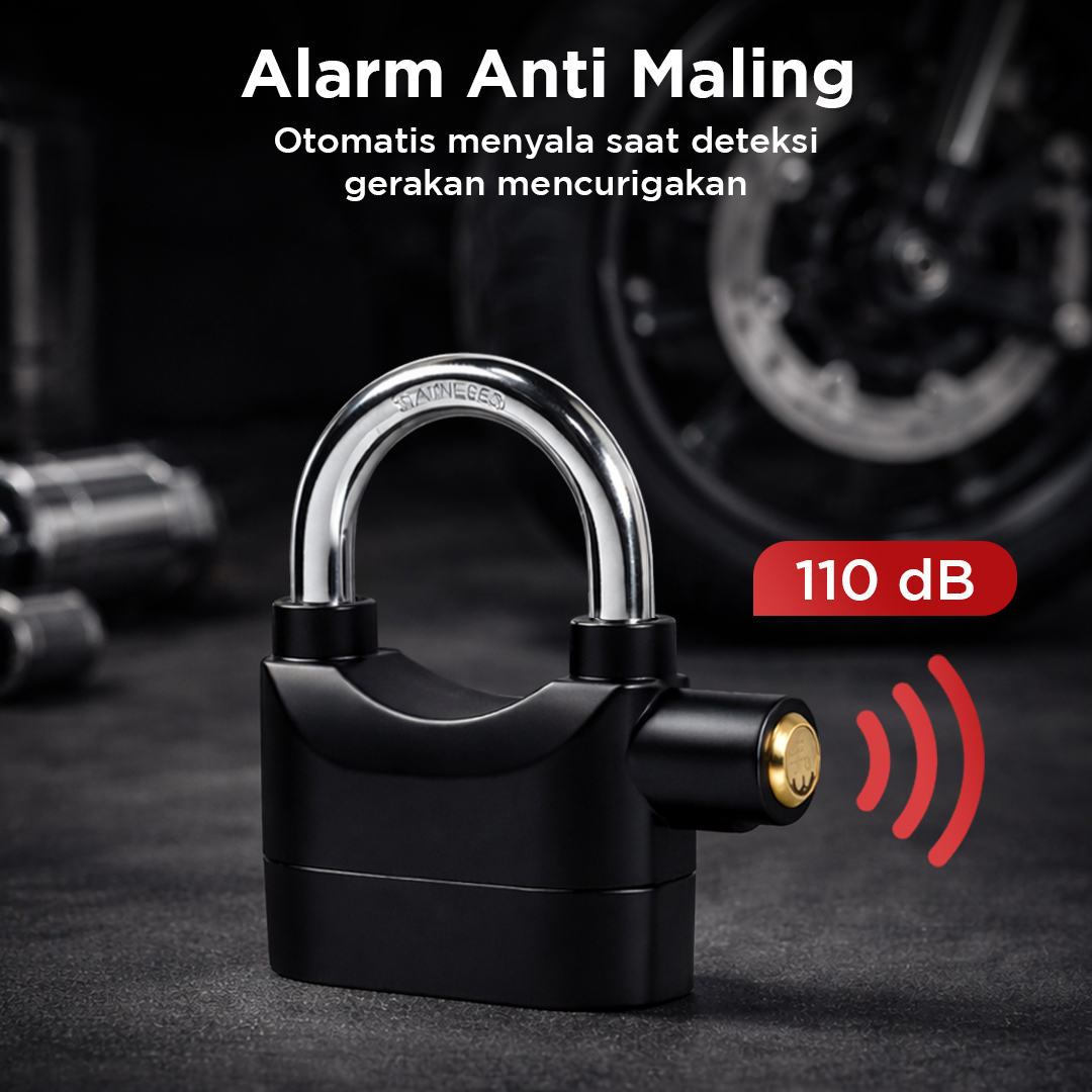 | Alarm Anti Maling Sistem keamanan canggih otomatis nyalakan alarm dengan suara nyaring hingga 110 dB. Sensor khusus yang digunakan deteksi getaran dan gerakan mencurigakan pada gembok. |