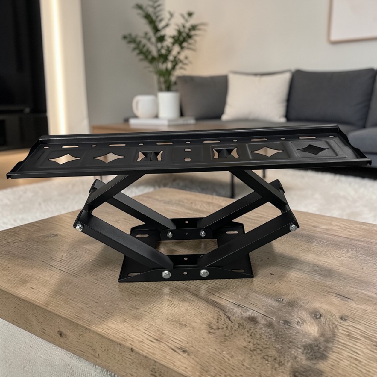 | Dapatkan Sudut Terbaik Dilengkapi dengan ekstensi fleksibel di bagian belakang, Anda dapat menyesuaikan posisi TV sesuai kenyamanan. Fitur kemiringan (tilt) hingga ± 15° memungkinkan layar dimiringkan ke atas atau ke bawah, sementara mekanisme putar (swivel) hingga 120° memudahkan Anda mengarahkan layar ke sisi kiri atau kanan. Ekstensi ini juga memungkinkan Anda menggeser TV ke depan atau ke belakang untuk visibilitas yang lebih optimal. |