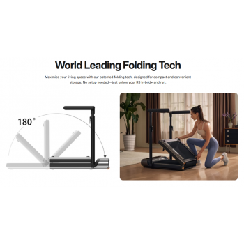 | Desain Foldable yang Menghemat Ruang Kingsmith WalkingPad R3 Hybrid+ memiliki desain foldable yang minimalis, sehingga dapat dilipat dan disimpan dengan mudah ketika tidak digunakan. Desain ini sangat cocok untuk rumah atau apartemen dengan lahan terbatas, karena memungkinkan Anda menyisakan ruang tanpa mengorbankan fungsi alat olahraga. |