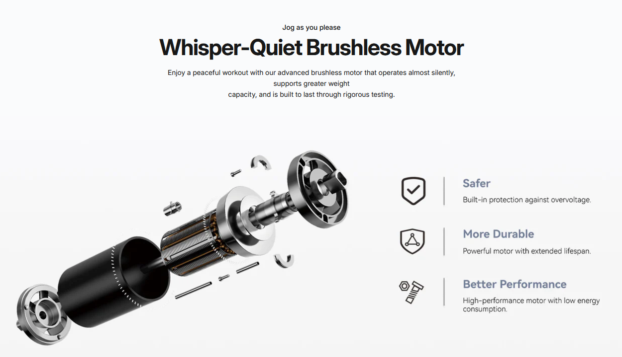| Senyap dan Tahan Lama Motor brushless 1 HP beroperasi dengan suara minim. Konsumsi daya 735 W mendukung performa stabil untuk penggunaan jangka panjang. Aktivitas berjalan terasa nyaman tanpa gangguan suara. |