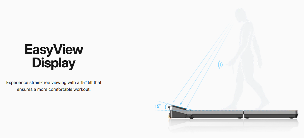 | Sudut Layar Ergonomis Dilengkapi LED EasyView Display dengan sudut kemiringan 15°. Tampilan data latihan terlihat jelas tanpa perlu menunduk berlebihan. Membantu mengurangi ketegangan mata saat berolahraga. |