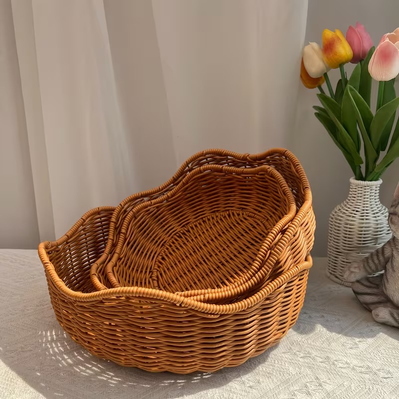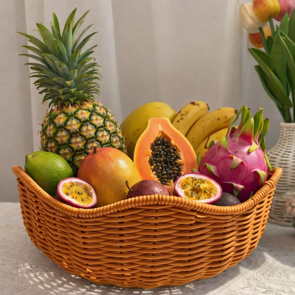 KKHouse keranjang wadah buah hadir sebagai solusi penyimpanan yang fungsional sekaligus mempercantik tampilan dapur, meja makan, atau area penyajian. Desain motif rotan memberikan kesan natural dan rapi tanpa kerepotan perawatan seperti rotan asli. Material plastik PP berkualitas menjadikan keranjang ini ringan, kuat, dan aman untuk menyimpan buah maupun bahan makanan lainnya. Tersedia dalam tiga ukuran berbeda sehingga mudah disesuaikan dengan kebutuhan ruang dan jumlah isi. Produk ini cocok untuk penggunaan harian di rumah, kafe, restoran, hingga usaha kuliner yang mengutamakan tampilan bersih dan profesional.