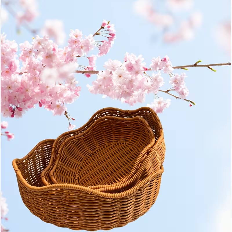 Motif rotan memberikan tampilan alami yang elegan sehingga keranjang terlihat lebih menarik dibanding wadah plastik biasa. Desain ini membantu area penyimpanan terlihat rapi dan tertata, sekaligus meningkatkan nilai visual ruangan.