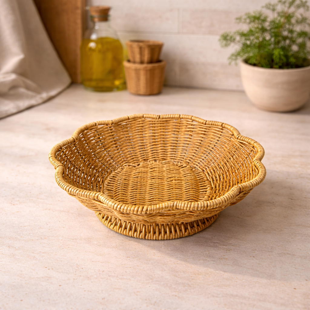 KKHouse keranjang wadah buah hadir sebagai solusi penyimpanan yang fungsional sekaligus mempercantik tampilan dapur, meja makan, atau area penyajian. Desain motif rotan memberikan kesan natural dan rapi tanpa kerepotan perawatan seperti rotan asli. Material plastik PP berkualitas menjadikan keranjang ini ringan, kuat, dan aman untuk menyimpan buah maupun bahan makanan lainnya. Tersedia 2 ukuran yang bisa Anda pilih sesuai dengan kebutuhan.