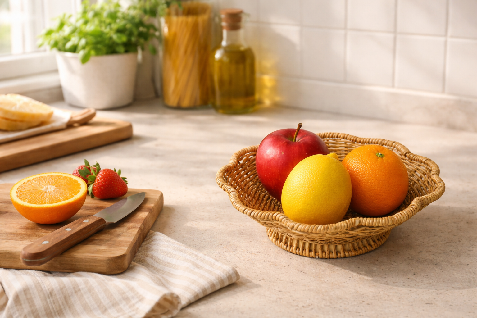 | Tersedia Dua Varian Ukuran Ukuran small (22 x 6 cm) cocok untuk menyimpan buah kecil atau camilan di meja. Ukuran large (28 x 8 cm) memberikan kapasitas lebih besar untuk kebutuhan keluarga atau penyajian di area komersial. |