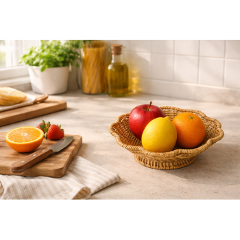 | Sirkulasi Udara Baik untuk Menjaga Kesegaran Struktur motif anyaman rotan memungkinkan sirkulasi udara yang lebih optimal di dalam keranjang. Buah dan bahan makanan dapat bertahan lebih lama karena tidak mudah lembap atau cepat membusuk. |