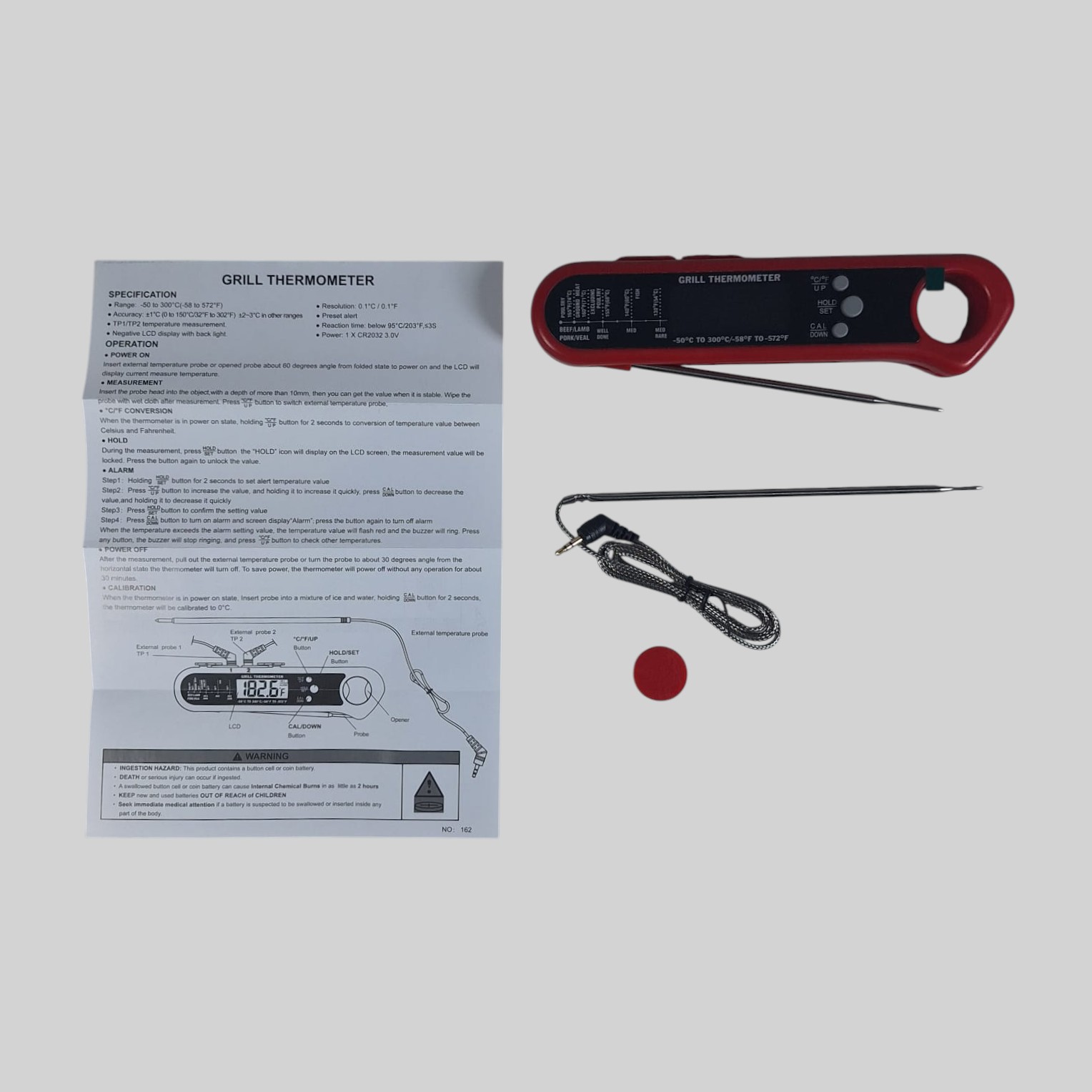 | Ketahanan Suhu Tinggi Memiliki ketahanan suhu tinggi, termometer makanan ini dapat mengukur suhu mulai dari -50 - 300 °C atau -58 - 572 °F. Cocok untuk Anda yang ingin memasak aneka hidangan dengan tingkat kematangan berbeda. |