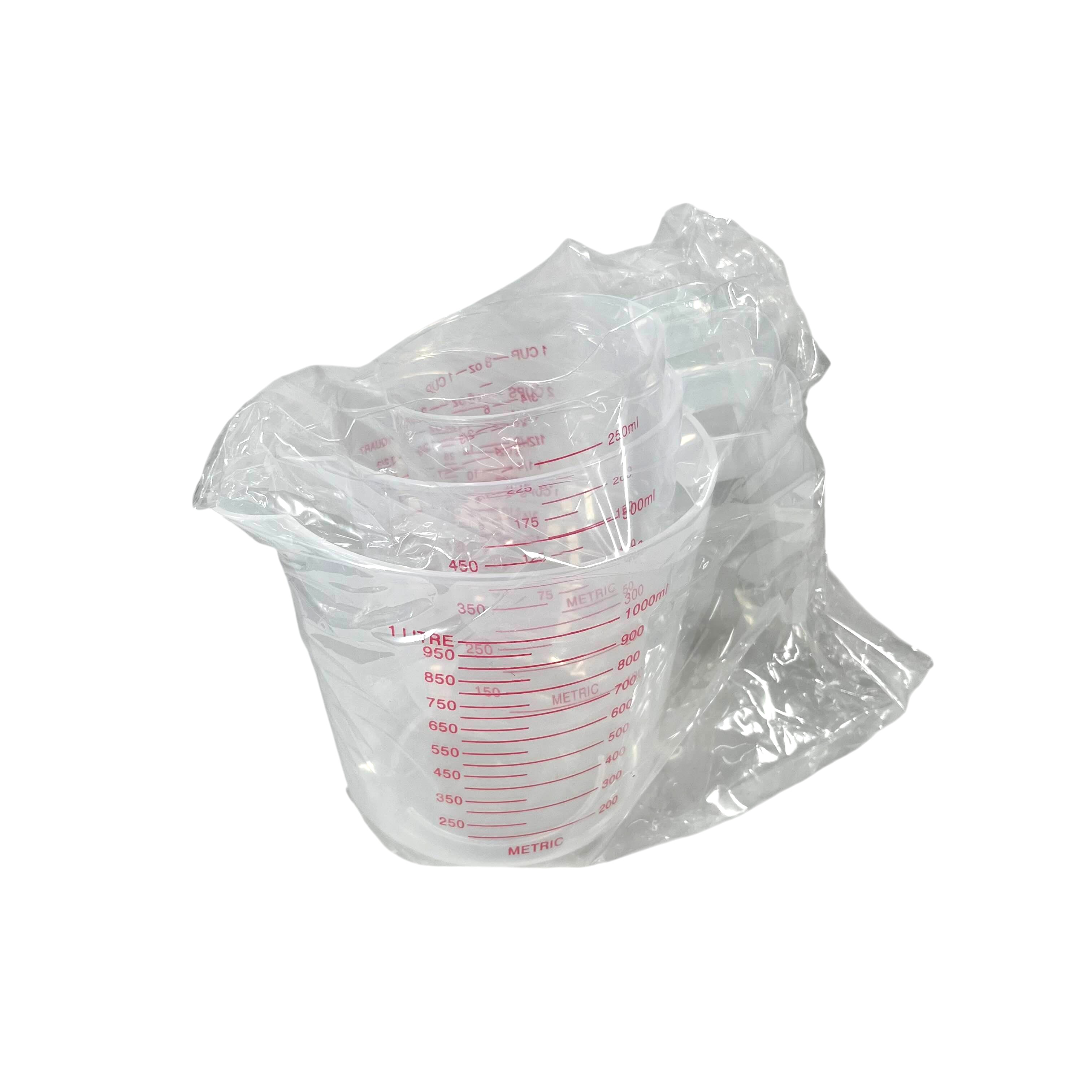 | Berbagai Satuan Ukuran Lengkap Setiap gelas ukur dilengkapi dengan skala satuan yang jelas dan mudah dibaca. Tersedia satuan ml (mililiter) dan oz (ounce) yang umum digunakan dalam resep internasional, serta cup untuk memudahkan mengikuti resep baking. Khusus ukuran 1 L, tersedia tambahan satuan quarter yang memudahkan pengukuran volume besar secara bertahap. |