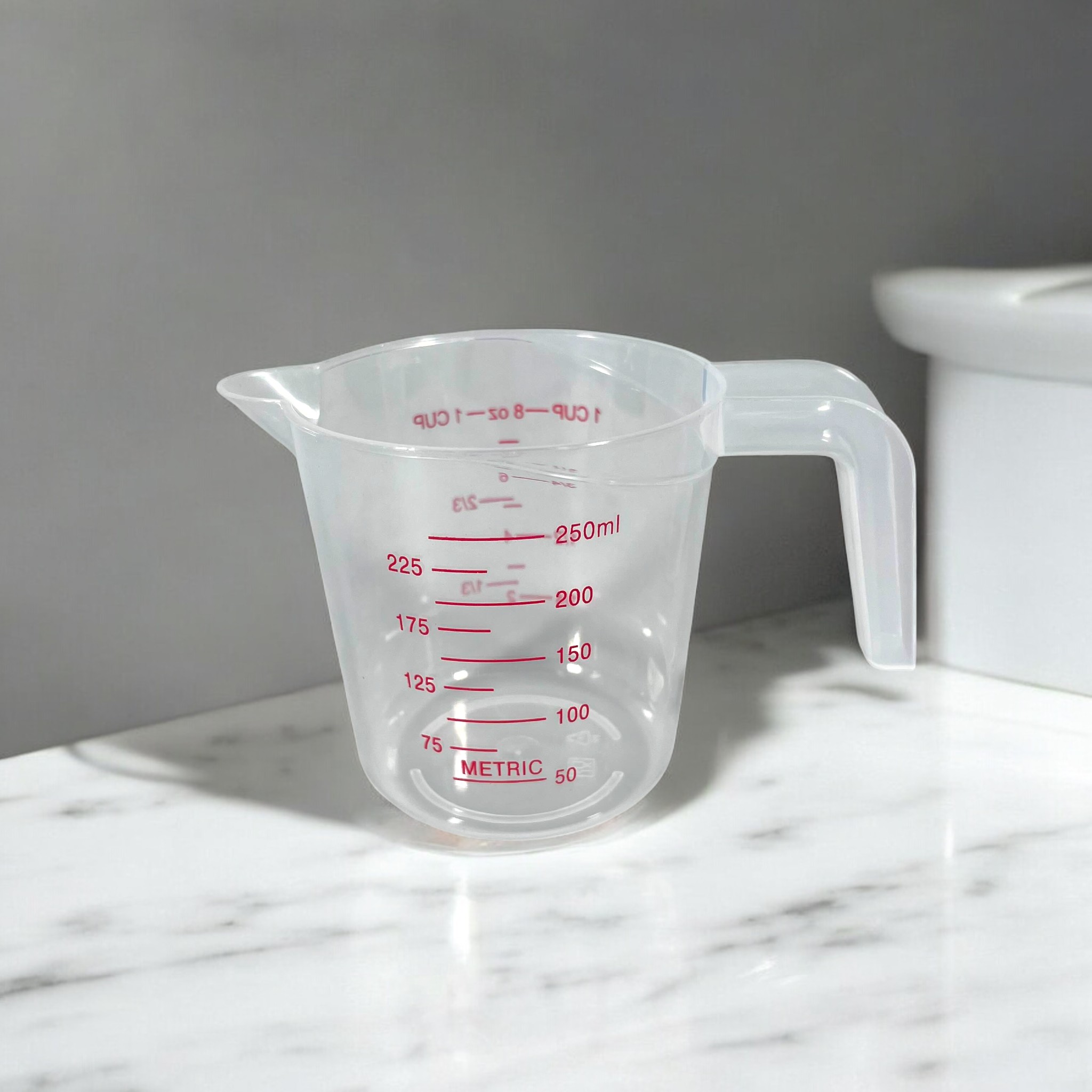 | Material Plastik PP Tebal dan Aman Terbuat dari material plastik PP berkualitas yang kuat dan tahan panas. Material ini tidak meninggalkan bau dan aman digunakan untuk bahan makanan maupun minuman. Ketebalan plastiknya membuat gelas ukur lebih awet, tidak mudah retak, dan tahan terhadap benturan ringan. |