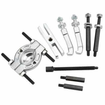| Cakupan Luas Untuk Berbagai Ukuran Set puller ini memiliki spesifikasi jangkauan yang luas. Rentang chuck clamping (penjepit chuck) 15 - 58 mm, artinya bagian chuck dapat menyesuaikan diameter bearing atau bagian dalam yang berukuran dari 15 mm hingga 58 mm. Rentang 2 jaw clamping (penjepit dua rahang) 0 - 50 mm, artinya bagian rahang dua kaki dari alat dapat menjepit dan menarik bearing dengan diameter hingga 50 mm. Dengan jangkauan seperti ini, satu set KOOKER sudah mencakup banyak ukuran bearing transmisi yang umum ditemukan pada mobil-mobil saat ini. |