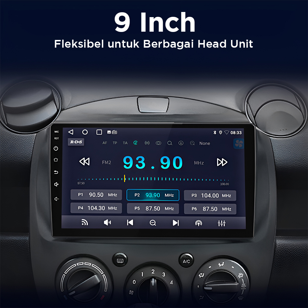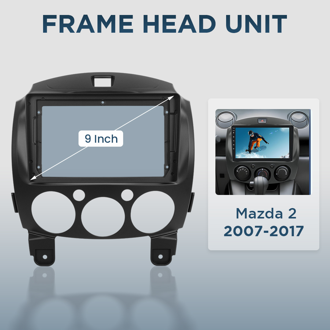 Frame head unit ini dirancang khusus untuk Mazda 2 2007-2017 dengan tampilan minimalis yang menyatu rapi dengan interior mobil. Terbuat dari material ABS tebal yang tahan panas, benturan, dan getaran untuk penggunaan jangka panjang. Ukuran 9 inch kompatibel dengan berbagai head unit populer, memberi tampilan dashboard lebih modern dan bersih. Kompatibel untuk head unit BQCC 9090-F.