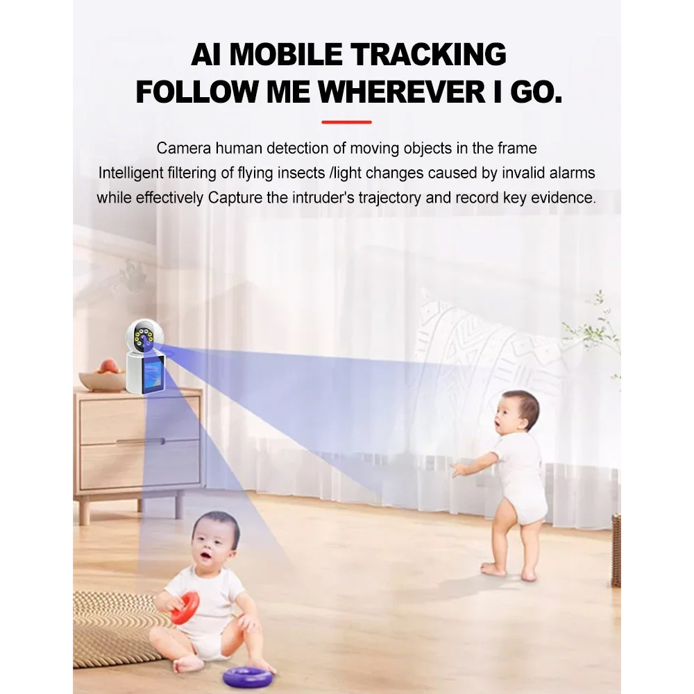 | Canggih dengan Layar Digital Kamera CCTV indoor juga dilengkapi dengan layar digital dengan ukuran 2.4 Inch. Layar ini akan menampilkan hasil rekaman CCTV dan juga bisa digunakan untuk video call. Ya, Anda bisa melakukan video call melalui CCTV dengan mudah. Tersedia dua tombol untuk melakukan panggilan video antara CCTV dan CCTV atau CCTV dan aplikasi CCTV. |
