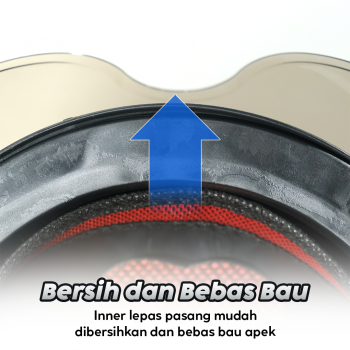 | Bersih dan Bebas Bau Bagian inner dapat dilepas dan dicuci untuk menjaga helm tetap bersih dan cegah bau apek karena lembap. Cukup tarik klip atau perekat dan inner akan langsung terlepas. |