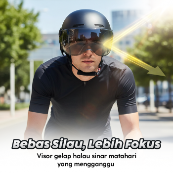 | Bebas Silau, Lebih Fokus Visor lebar dengan warna gelap efektif halau sinar matahari yang menyilaukan agar Anda dapat berkendara dengan fokus. Buka dan tutup visor sesuai kebutuhan untuk waktu berkendara terbailk. |