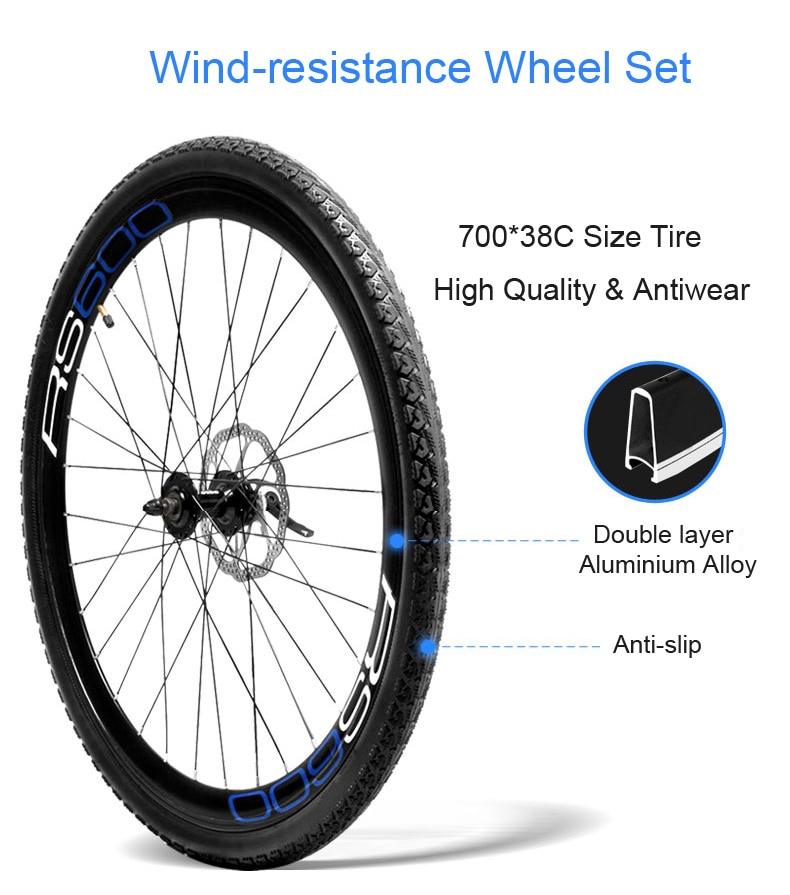 | 			 Roda Unggulan Anti Slip 			Roda anti slip berukuran 700 x 38C hadir untuk menjaga kestabilan di area bergelombang. Dibekali velg aluminium alloy super kuat dengan bobot yang ringan. Paduan keduanya siap menemani Anda melibas seluruh kondisi medan.