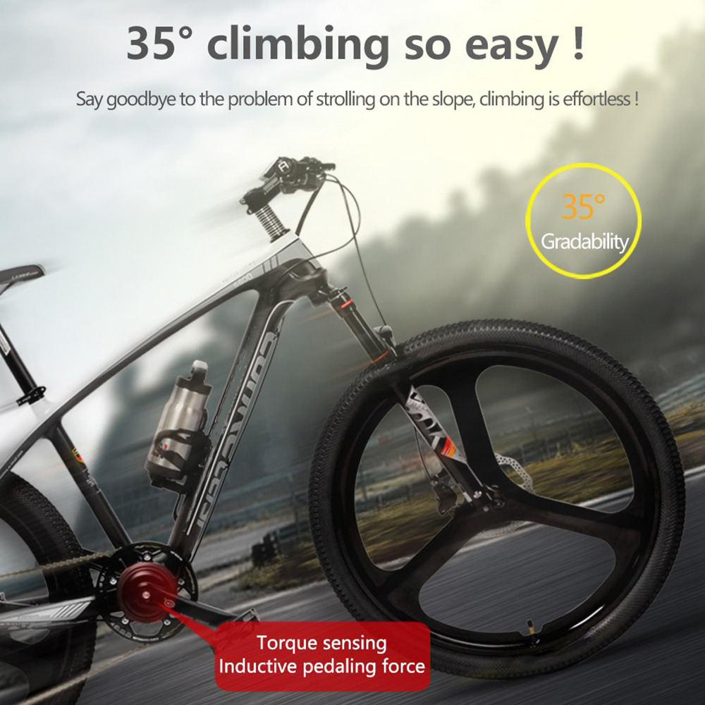 | Motor Berkecepatan Tinggi Percepat Anda sampai ke tujuan berkat 400 W motor berkecepatan tinggi. Dorong sepeda listrik gunung melaju hingga kecepatan 35 km/Jam dengan jarak tempuh mencapai 60 km. Dibekali 5 perpindahan gigi membuat kayuhan makin efisien. |