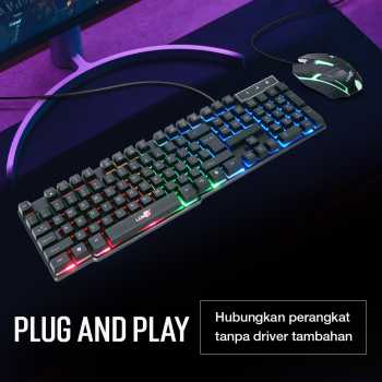 | Plug and Play Praktis Sistem plug and play membuat Anda dapat langsung menghubungkan gaming keyboard tanpa aplikasi tambahan. Cukup pasang pada port USB PC atau laptop dan keyboard siap digunakan. |