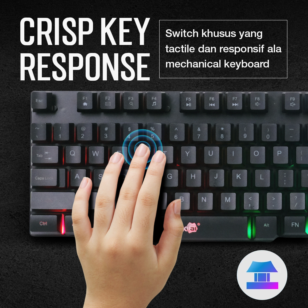 | Respon Gesit Khas Gaming Dibekali switch khusus, gaming keyboard dapat memberikan respon yang cepat. Rebounrd yang kuat hasilkan feel tactile khas mechanical keyboard. |