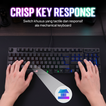 | Respon Gesit Khas Gaming Dibekali switch khusus, gaming keyboard dapat memberikan respon yang cepat. Rebounrd yang kuat hasilkan feel tactile khas mechanical keyboard. |