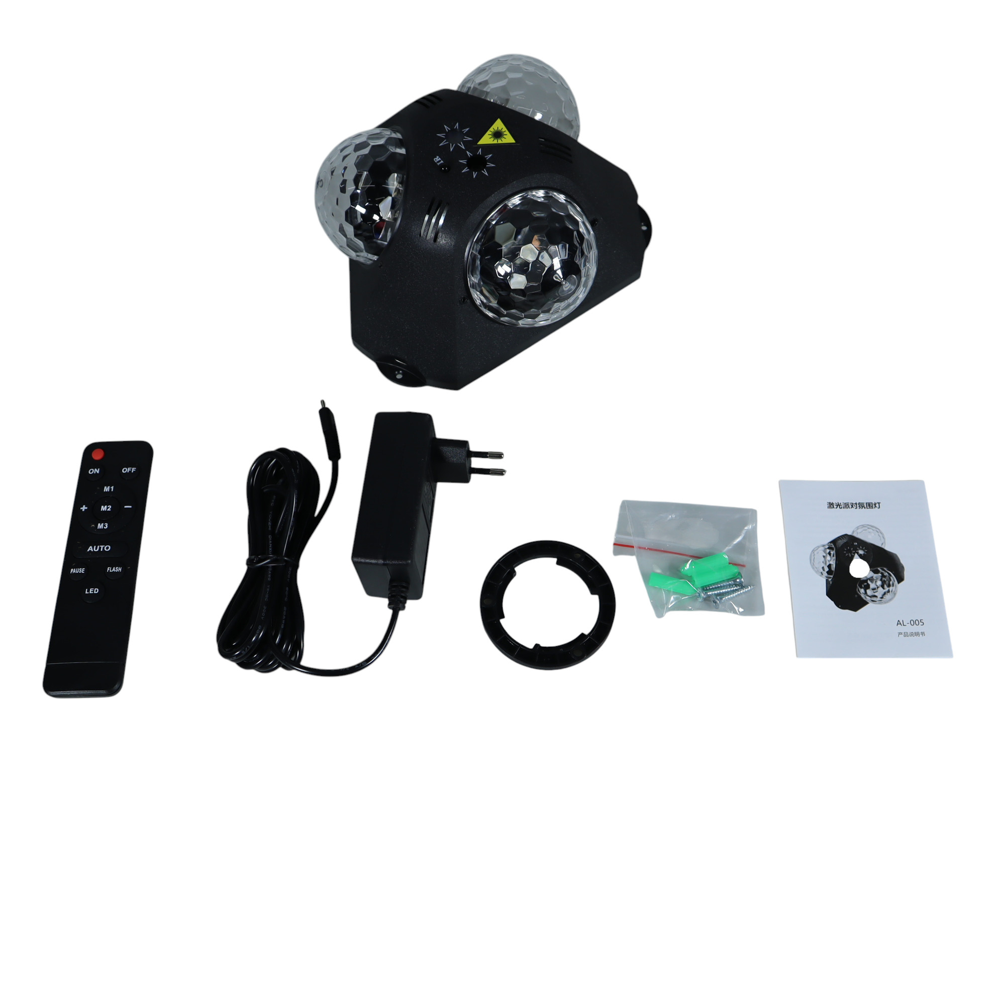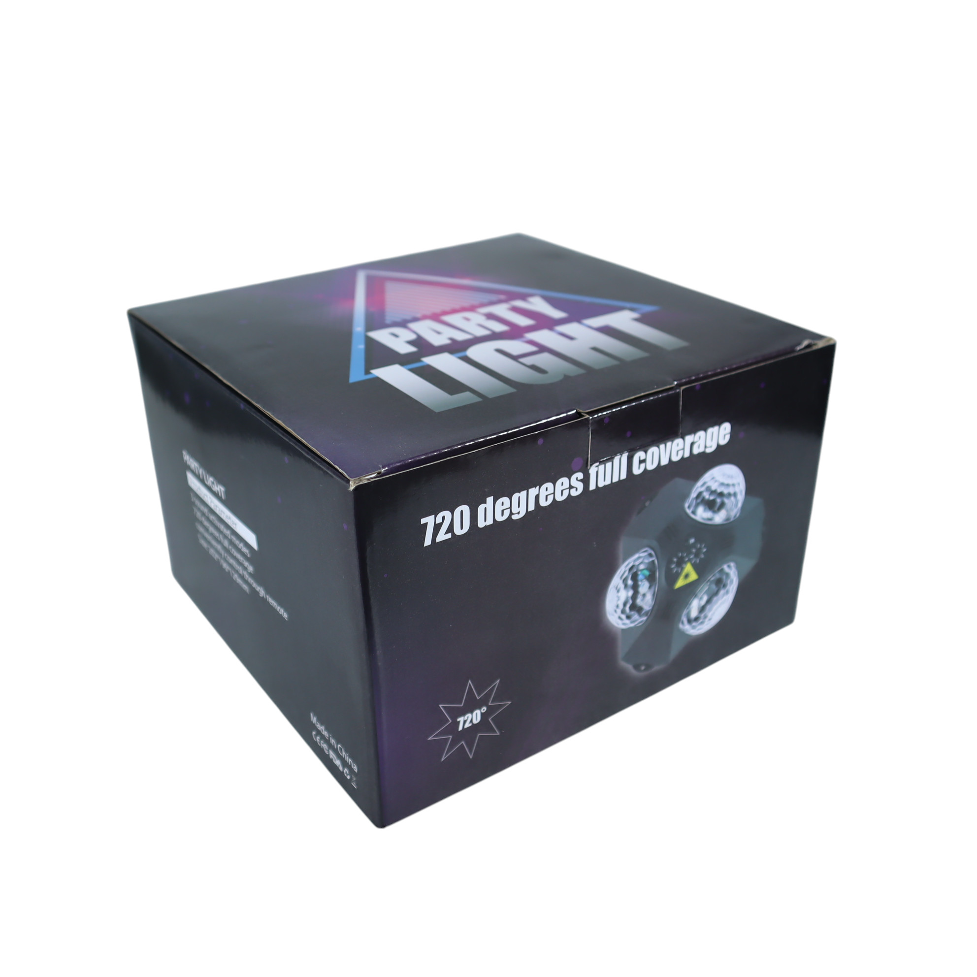 | Bergerak Hidupkan Suasana Berbeda dengan lampu disko biasa yang hanya menggunakan satu atau dua magic ball, lampu ini dirancang dengan 3 magic ball dan 2 laser. Desain ini menghasilkan efek cahaya yang lebih banyak, lebih padat dan lebih merata ke seluruh ruangan. Pengalaman pesta jadi lebih maksimal dan terasa menggunakan lampu panggung profesional. |