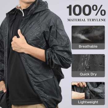 | Tipis, Ringan, dan Mudah Disimpan Desain jaket yang tipis dan ringan membuatnya sangat mudah dilipat dan disimpan. Anda dapat memasukkannya ke dalam tas atau ransel tanpa memakan banyak ruang, menjadikannya ideal sebagai jaket cadangan saat bepergian. |