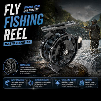 | Reel Pancing Khusus Fly fishing merupakan teknik melempar umpan buatan yang mengandalkan presisi dan kontrol. Reel ini dirancang untuk mendukung teknik tersebut sehingga pergerakan tali terasa lebih natural di air. Cocok digunakan di sungai, pinggir danau, maupun spot air tenang lainnya. |