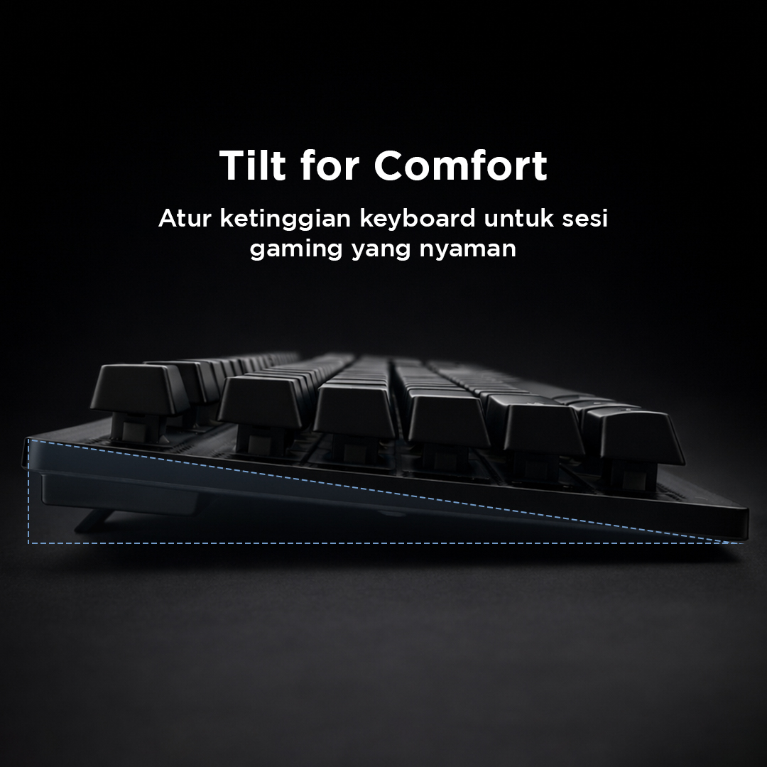 | Gaming Lebih Nyaman Stand pada bagian bawah keyboard dapat dibuka untuk sesuaikan ketinggian keyboard untuk waktu gaming yang lebih nyaman. Tak ada tangan yang lelah atau kaku selama bermain game. |