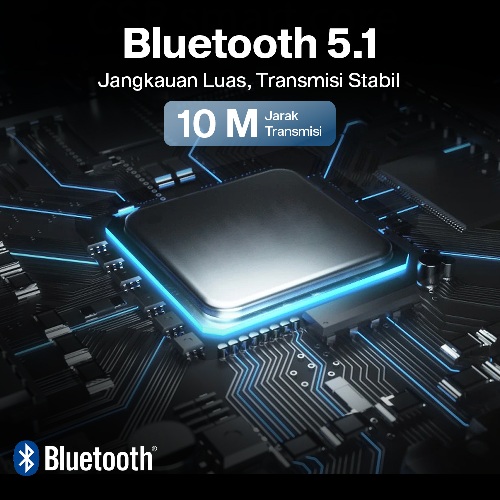 | Jangkauan Luas, Transmisi Stabil Menggunakan koneksi bluetooth 5.1, headphone ini dapat dihubungkan ke berbagai jenis smartphone. Teknologi generasi terbaru ini lebih stabil dan bebas lag dengan jarak transmisi hingga 10 M yang sesuai untuk perjalanan jauh. |