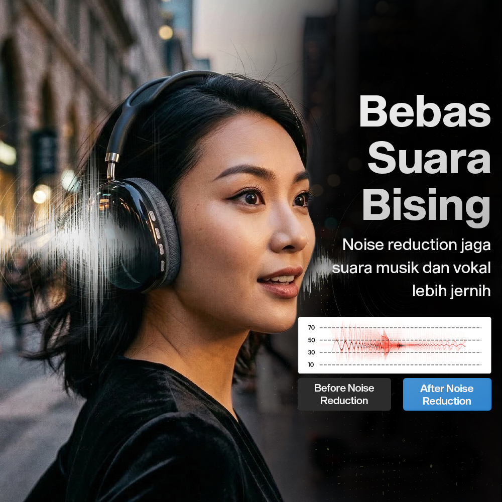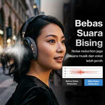 | Bebas Suara Bising Redam suara bising yang menggangu dengan fitur Noise Reduction. Kini Anda bisa mendengarkan musik favorit tanpa suara bising dair skeitar yang mengganggu. Cocok untuk Anda yang ingin mendengarkan audio dengan fokus tinggi. |
