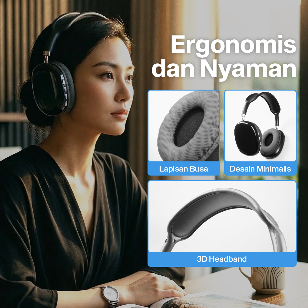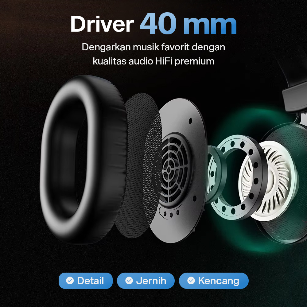 | Ergonomis dan Nyaman Dibuat untuk penggunaan sehari-hari, headphone ini hadir dengan model ergonomis. Lapisan busa pada ear cup pastikan headphone nyaman dipakai seharian. Tak ada kepala yang sakit berkat 3D headband yang lebar untuk mengurangi tekanan pada kepala. |