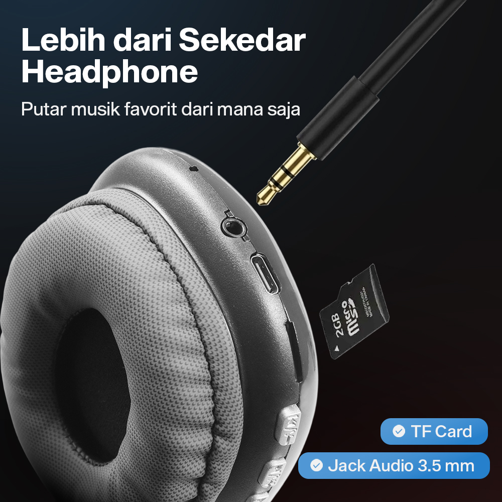 | Lebih dari Sekedar Headphone Dengarkan musik favorit lebih mudah berkat adanya port TF Card dan radio FM. Kini Anda dapat memutar musik tanpa harus menyambungkan headphone dengan perangkat lainnya. |