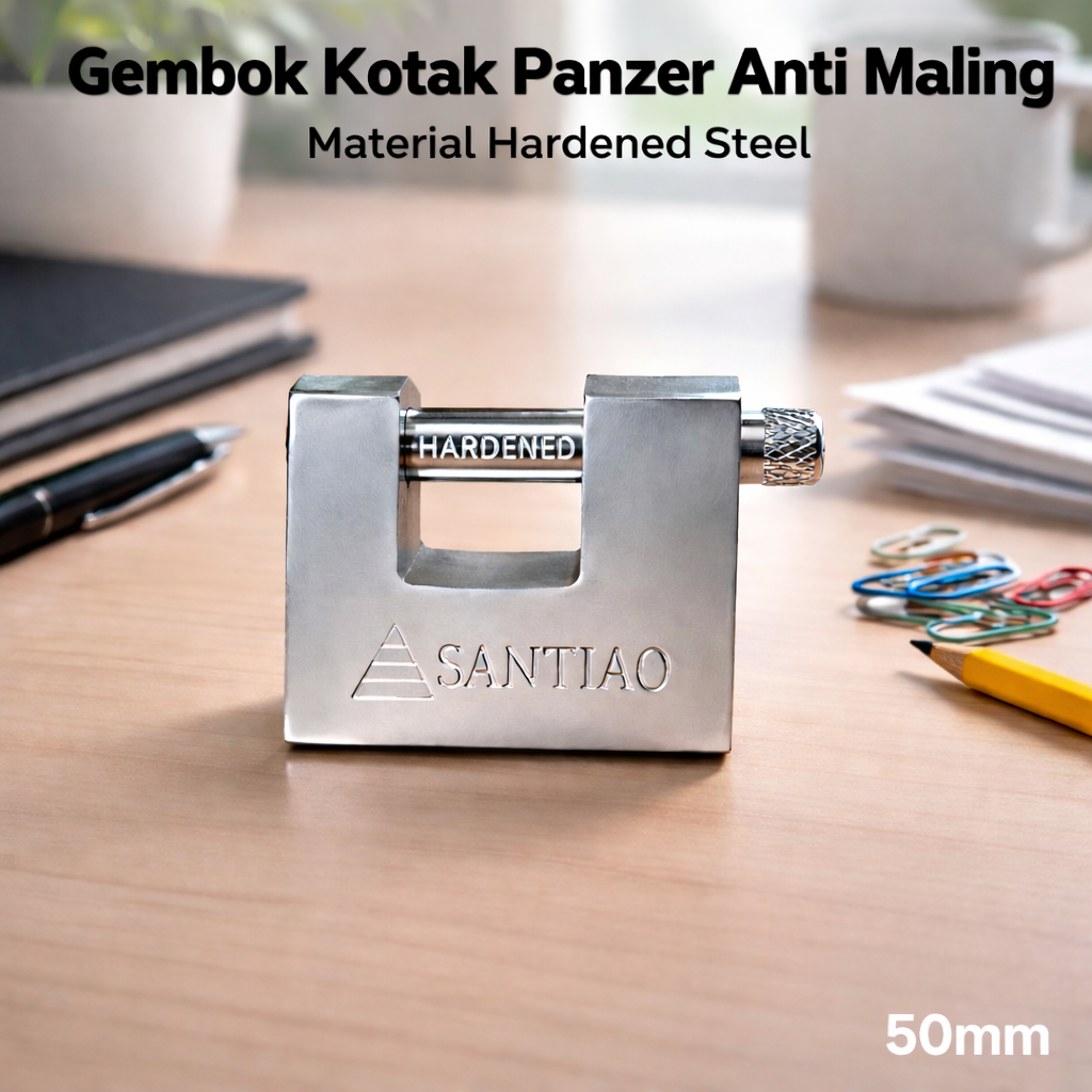 | Baja Kokoh Anti Karat Karena berfungsi sebagai pengaman, sudah pasti gembok kotak panzer ini terbuat dari hardened steel. Gembok menjadi sangat kuat dan tahan berbagai serangan fisik. Tak ketinggalan lapisan nikel pada bodinya dan lapisan krom pada bilah pengunci yang membuat gembok menjadi anti gores dan anti karat. |