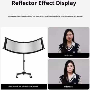 Reflektor cahaya U-Shape dari LIFER memiliki bentuk permukaan melengkung seperti huruf U yang dapat membantu cahaya menyebar. Terdapat varian ukuran 100 x 50 cm dan 180 x 60 cm, reflektor ini cocok untuk foto paspor, portrait kasual, serta kebutuhan pencahayaan ringan di studio. Rangkanya terbuat dari alumunium alloy yang kokoh dan dilengkapi stand lantai besar dan kuat, reflektor ini stabil digunakan untuk pemotretan indoor dengan setup profesional.