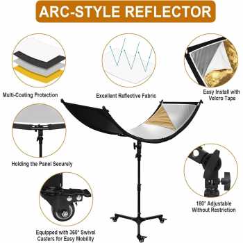 Atasi masalah pencahayaan yang terlalu gelap, terlalu terang, atau kurang merata dengan reflektor cahaya. Pantulan cahaya dari matahari atau lampu studio dapat dimanipulasi sesuai kebutuhan fotografi. Terlebih lagi reflektor ini menawarkan 4 warna reflektor untuk hasil yang berbeda, yakni: