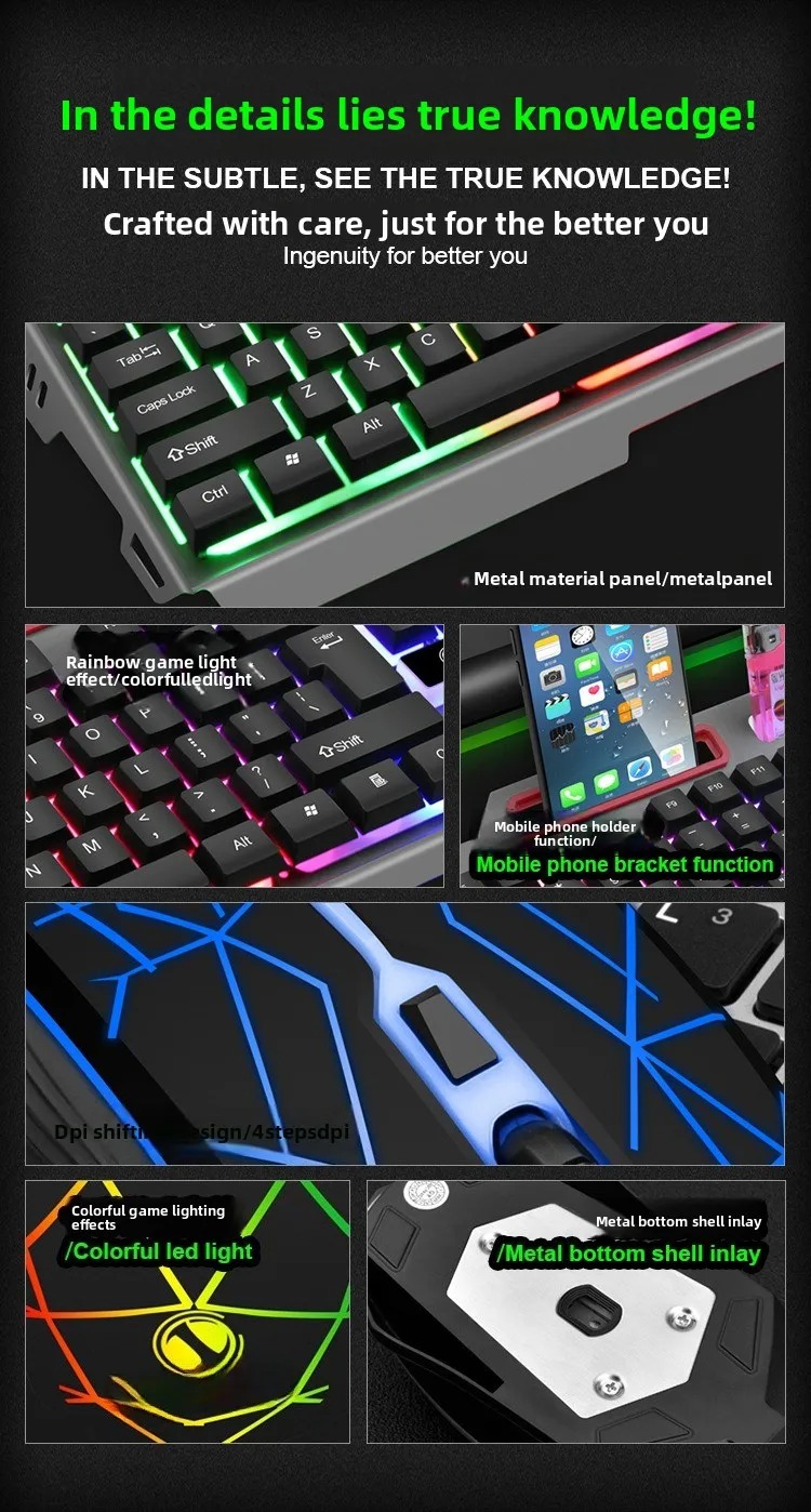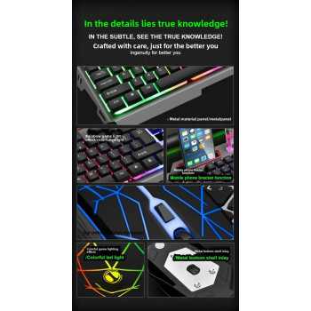 Tingkatkan pengalaman bermain game Anda dengan gaming keyboard dan mouse set ini. Menggunakan switch dengan feel ala mechanical keyboard, setiap ketukan terasa presisi dan responsif. Dibalut desain retro yang unik dengan LED RGB, tampilannya makin keren di meja gaming Anda. Dilengkapi holder smartphone di bagian atas, membuat keyboard ini bukan hanya stylish, tetapi juga fungsional.