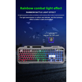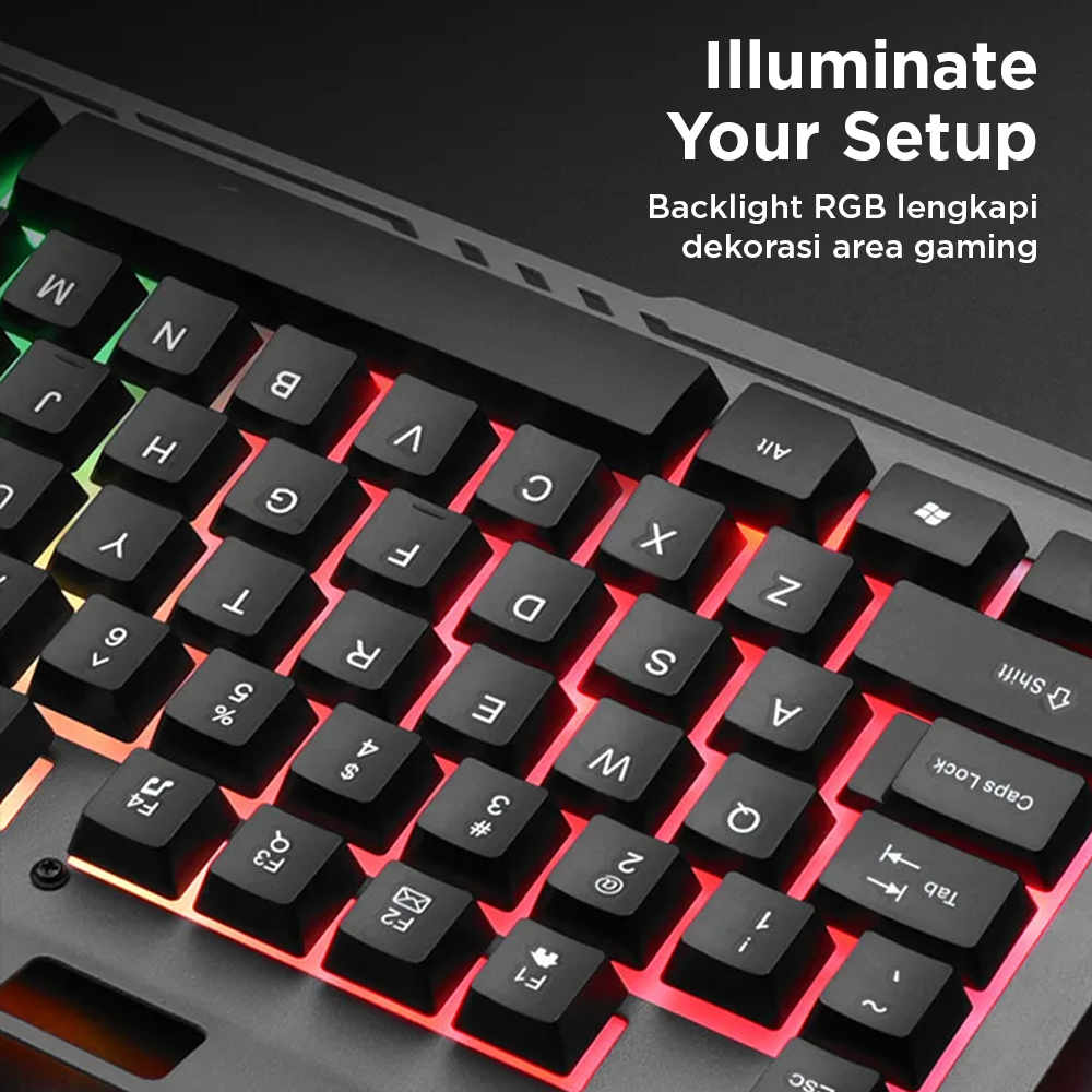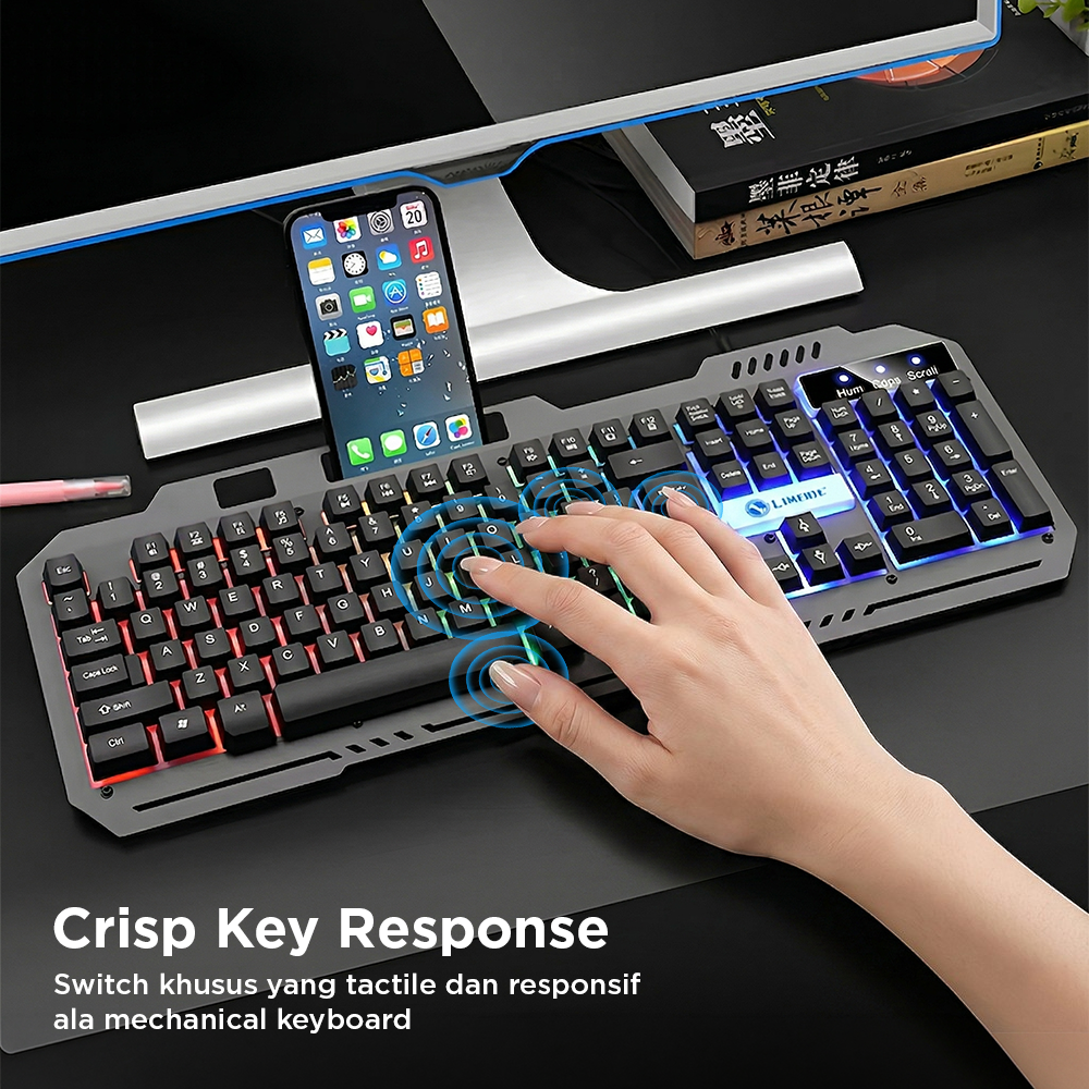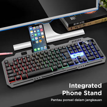Tingkatkan pengalaman bermain game Anda dengan gaming keyboard dan mouse set ini. Menggunakan switch dengan sensasi ala mechanical keyboard, setiap ketukan terasa presisi dan responsif. Dibalut desain retro yang unik dengan LED RGB, tampilannya makin keren di meja gaming Anda. Dilengkapi holder smartphone di bagian atas, membuat keyboard ini bukan hanya stylish, tetapi juga fungsional.