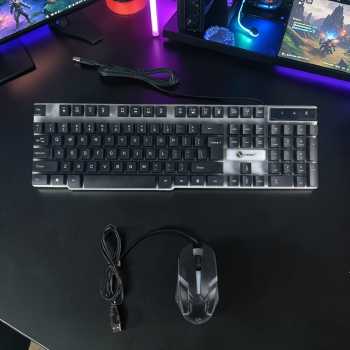 | Paket Keyboard dan Mouse Gaming Produk ini hadir sebagai keyboard gaming mouse set sehingga Anda tidak perlu membeli mouse secara terpisah. Mouse gaming memiliki sensitivitas hingga 800 hingga 1600 DPI yang cukup responsif untuk penggunaan kerja maupun gaming ringan. Desain mouse dan keyboard RGB dibuat serasi sehingga tampilan setup komputer terlihat lebih rapi dan menarik. |