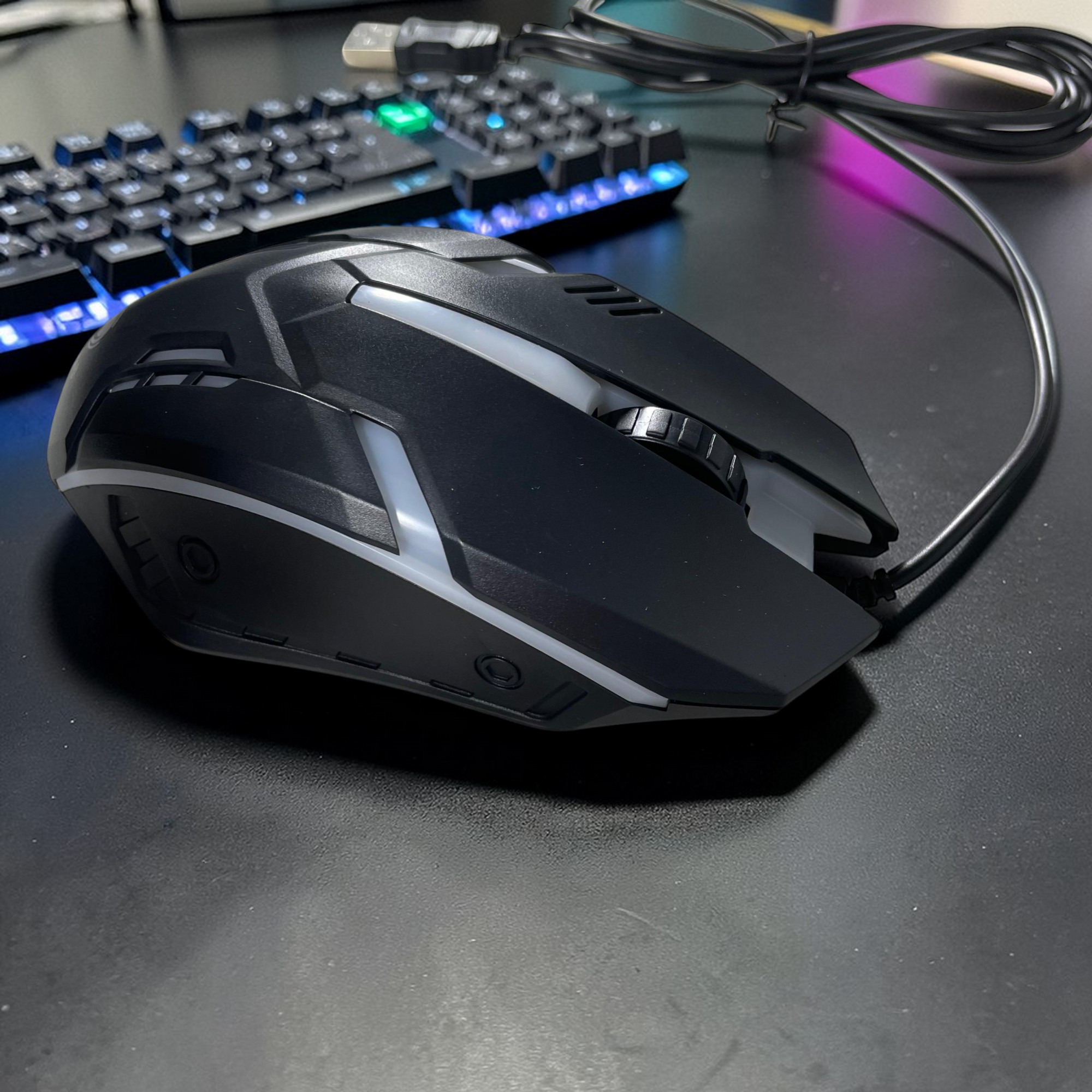 Gaming keyboard USB dengan mechanical feel switch yang responsif untuk gaming dan mengetik. Keyboard RGB 104 key ini hadir dengan tombol FN, desain full size, serta mouse gaming DPI 800–1600 dalam satu paket keyboard gaming mouse untuk PC dan laptop Windows.