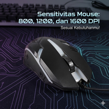 | Combo Dengan Mouse Gaming Produk ini sudah termasuk mouse gaming sehingga lebih hemat dan praktis. Mouse memiliki pilihan sensitivitas hingga 1600 DPI yang cukup responsif untuk kerja maupun gaming ringan. Desain mouse dan keyboard senada sehingga setup komputer terlihat rapi. |