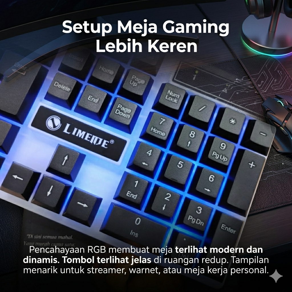Sedang cari keyboard gaming yang nyaman dipakai main game sekaligus enak untuk mengetik harian? Banyak keyboard murah terasa keras, lambat respon, dan cepat rusak. LIMEIDE GTX300 hadir sebagai solusi praktis dengan paket lengkap keyboard dan mouse gaming RGB dalam satu pembelian. Cocok untuk pengguna PC maupun laptop Windows yang ingin setup gaming lebih keren dan fungsional.