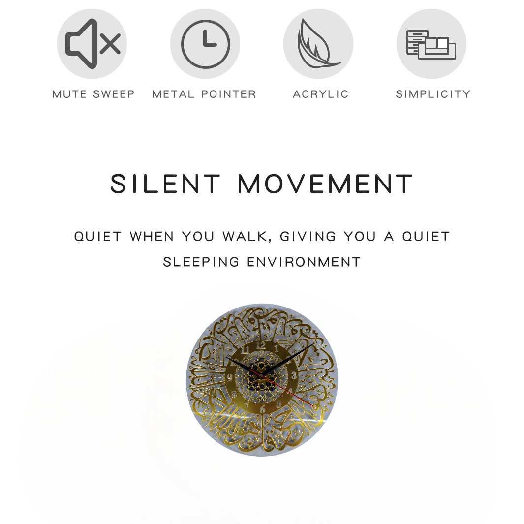 | Desain Elegan dan Islami Dalam sekali lihat saja, Anda bisa merasakan kesan elegan dan mahal pada jam dinding ini. Belum lagi kaligrafi Surah Al-Ikhlas yang memberikan unsur Islami di ruangan Anda. Inilah jam yang tidak sekadar penunjuk waktu, tetapi juga turut menunjang aspek estetika di rumah. |