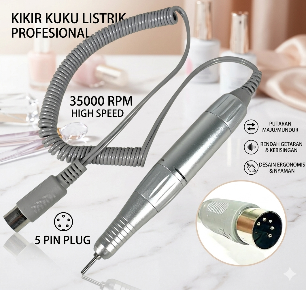 | Kecepatan Putar Tinggi & Dapat Disesuaikan Pengikir kuku ini mendukung pengaturan kecepatan rotasi dari 0 hingga 35000 RPM dan memiliki 5 pin plug. Tidak hanya itu, alat ini dapat juga digunakan dalam arah maju maupun mundur. Dengan kecepatan tinggi ini, proses pengerjaan kuku menjadi lebih cepat, presisi, dan hemat waktu, memberikan pengalaman manicure yang lebih efektif. |
