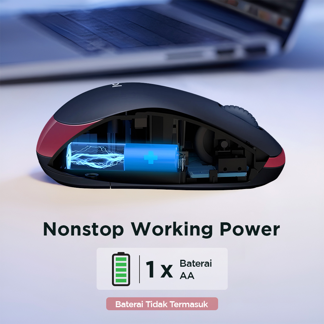 | <Kerja Nonstop Bukan Masalah Tak ada mouse gaming yang mati mendadak karena kehabisan baterai. Taffware menggunakan baterai AA sebagai sumber listrik yang mebuat produknya dapat digunakan untuk jangka panjang. |