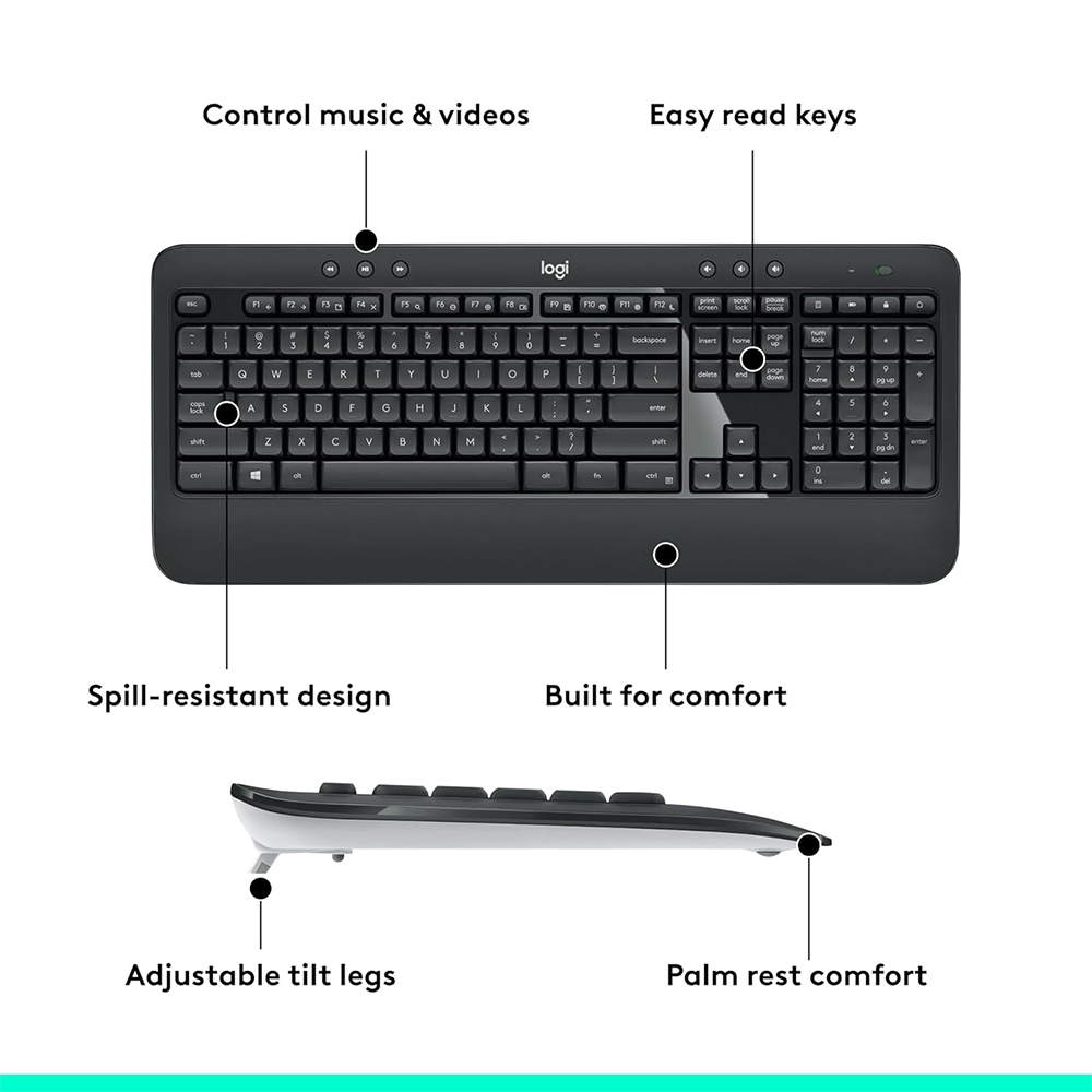 Logitech MK540 Advanced keyboard mouse wireless hadir sebagai solusi praktis untuk ruang kerja modern. Dengan desain ringkas, koneksi nirkabel stabil 2.4 GHz, dan penggunaan daya yang hemat, set ini memberikan kenyamanan maksimal untuk bekerja maupun penggunaan harian. Keyboard dirancang dengan tombol senyap yang nyaman digunakan dalam waktu lama, sementara mouse ergonomisnya responsif dan presisi. Dilengkapi fitur tahan tumpahan cairan (spill-resistant), Logitech menjadi pilihan ideal untuk kantor, rumah, maupun ruang belajar.