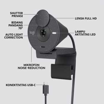 Logitech Brio 300 hadir sebagai webcam Full HD 1080 P yang dirancang khusus untuk memastikan Anda selalu tampil profesional dan terdengar jernih di setiap pertemuan virtual. Dibekali teknologi koreksi cahaya otomatis RightLight 2 dan mikrofon peredam kebisingan, Brio 300 menjawab semua tantangan meeting online modern. Webcam dibuat dari minimal 62% plastik daur ulang, menjadikannya pilihan cerdas yang ramah lingkungan.