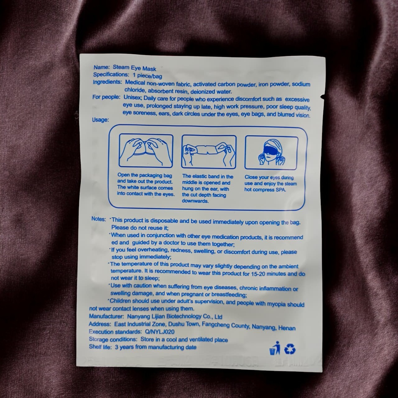 | Bahan Lembut dan Nyaman di Kulit Terbuat dari bahan lembut yang ramah di kulit, masker ini memberikan kenyamanan maksimal saat menempel di area mata. Teksturnya halus sehingga tidak menimbulkan iritasi atau rasa gatal meski digunakan dalam waktu lama. Dengan kualitas bahan yang aman, Anda bisa menikmati relaksasi tanpa khawatir terhadap efek samping pada kulit. |